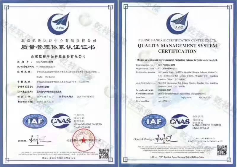 質(zhì)量管理體系認(rèn)證證書