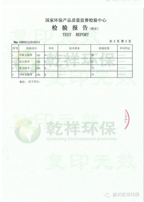 藝馨復(fù)合甲醛凈化劑檢測(cè)報(bào)告
